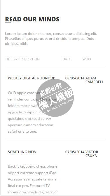 模板简介:该模板名称为【Office Website办公站html5公司企业手机wap网站模板免费下载】,大小是,文档格式为.,推荐使用打开,作品中的图片,文字等数据均可修改,图片请在作品中选中图片替换即可,文字修改直接点击文字修改即可,您也可以新增或修改作品中的内容,该模板来自用户分享,如有侵权行为请联系网站客服处理。欢迎来懒人模板【企业】栏目查找您需要的精美模板。