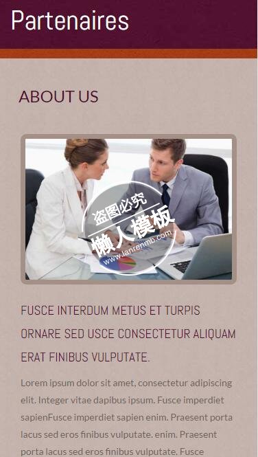 模板简介:该模板名称为【Partenaires商业合作会谈html5公司企业手机wap网站模板免费下载】,大小是,文档格式为.,推荐使用打开,作品中的图片,文字等数据均可修改,图片请在作品中选中图片替换即可,文字修改直接点击文字修改即可,您也可以新增或修改作品中的内容,该模板来自用户分享,如有侵权行为请联系网站客服处理。欢迎来懒人模板【企业】栏目查找您需要的精美模板。