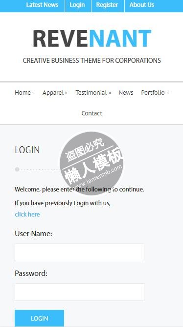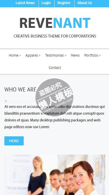 模板简介:该模板名称为【Revenant贵重主题系列html5公司企业手机wap网站模板免费下载】,大小是,文档格式为.,推荐使用打开,作品中的图片,文字等数据均可修改,图片请在作品中选中图片替换即可,文字修改直接点击文字修改即可,您也可以新增或修改作品中的内容,该模板来自用户分享,如有侵权行为请联系网站客服处理。欢迎来懒人模板【企业】栏目查找您需要的精美模板。