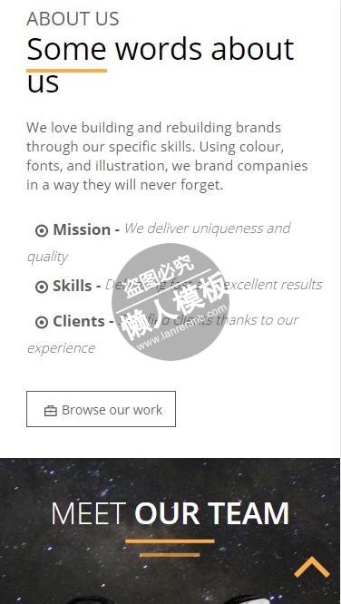 模板简介:该模板名称为【Spirit8黑色网站设计html5公司企业手机wap网站模板免费下载】,大小是,文档格式为.,推荐使用打开,作品中的图片,文字等数据均可修改,图片请在作品中选中图片替换即可,文字修改直接点击文字修改即可,您也可以新增或修改作品中的内容,该模板来自用户分享,如有侵权行为请联系网站客服处理。欢迎来懒人模板【企业】栏目查找您需要的精美模板。