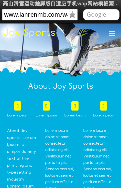 模板简介:该模板名称为【高山滑雪运动触屏版自适应手机wap网站模板源码下载】,大小是,文档格式为.,推荐使用打开,作品中的图片,文字等数据均可修改,图片请在作品中选中图片替换即可,文字修改直接点击文字修改即可,您也可以新增或修改作品中的内容,该模板来自用户分享,如有侵权行为请联系网站客服处理。欢迎来懒人模板【体育】栏目查找您需要的精美模板。