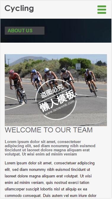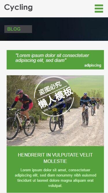 模板简介:该模板名称为【Cycling自行车骑行html5手机wap体育网站模板免费下载】,大小是,文档格式为.,推荐使用打开,作品中的图片,文字等数据均可修改,图片请在作品中选中图片替换即可,文字修改直接点击文字修改即可,您也可以新增或修改作品中的内容,该模板来自用户分享,如有侵权行为请联系网站客服处理。欢迎来懒人模板【体育】栏目查找您需要的精美模板。