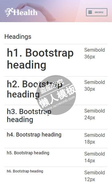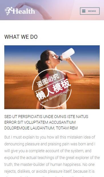 模板简介:该模板名称为【Health女性健康锻炼html5手机wap体育网站模板免费下载】,大小是,文档格式为.,推荐使用打开,作品中的图片,文字等数据均可修改,图片请在作品中选中图片替换即可,文字修改直接点击文字修改即可,您也可以新增或修改作品中的内容,该模板来自用户分享,如有侵权行为请联系网站客服处理。欢迎来懒人模板【体育】栏目查找您需要的精美模板。