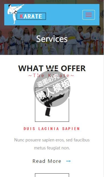 模板简介:该模板名称为【Karate空手道训练html5手机wap体育网站模板免费下载】,大小是,文档格式为.,推荐使用打开,作品中的图片,文字等数据均可修改,图片请在作品中选中图片替换即可,文字修改直接点击文字修改即可,您也可以新增或修改作品中的内容,该模板来自用户分享,如有侵权行为请联系网站客服处理。欢迎来懒人模板【体育】栏目查找您需要的精美模板。