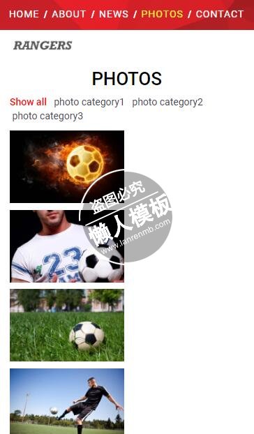 模板简介:该模板名称为【RANGERS足球运动训练比赛html5手机wap体育网站模板免费下载】,大小是,文档格式为.,推荐使用打开,作品中的图片,文字等数据均可修改,图片请在作品中选中图片替换即可,文字修改直接点击文字修改即可,您也可以新增或修改作品中的内容,该模板来自用户分享,如有侵权行为请联系网站客服处理。欢迎来懒人模板【体育】栏目查找您需要的精美模板。