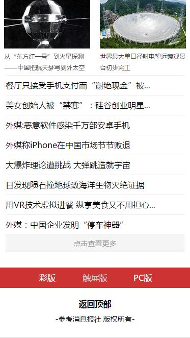 模板简介:该模板名称为【参考消息网触屏版自适应手机wap新闻网站模板下载】,大小是,文档格式为.,推荐使用打开,作品中的图片,文字等数据均可修改,图片请在作品中选中图片替换即可,文字修改直接点击文字修改即可,您也可以新增或修改作品中的内容,该模板来自用户分享,如有侵权行为请联系网站客服处理。欢迎来懒人模板【新闻】栏目查找您需要的精美模板。