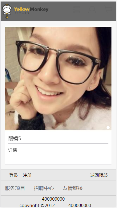 模板简介:该模板名称为【Yellow Monkey时尚眼镜网站模板源码免费下载】,大小是,文档格式为.,推荐使用打开,作品中的图片,文字等数据均可修改,图片请在作品中选中图片替换即可,文字修改直接点击文字修改即可,您也可以新增或修改作品中的内容,该模板来自用户分享,如有侵权行为请联系网站客服处理。欢迎来懒人模板【眼镜】栏目查找您需要的精美模板。