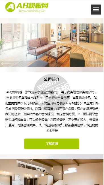 模板简介:该模板名称为【现代简约装饰装潢网站整站带织梦后台pc手机双网站源码下载】,大小是,文档格式为.,推荐使用打开,作品中的图片,文字等数据均可修改,图片请在作品中选中图片替换即可,文字修改直接点击文字修改即可,您也可以新增或修改作品中的内容,该模板来自用户分享,如有侵权行为请联系网站客服处理。欢迎来懒人模板【装饰】栏目查找您需要的精美模板。