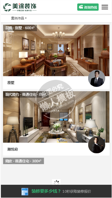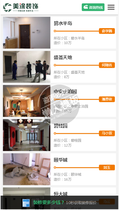 模板简介:该模板名称为【简洁装潢装饰报价公司网站整站带织梦后台pc手机双网站源码下载】,大小是,文档格式为.,推荐使用打开,作品中的图片,文字等数据均可修改,图片请在作品中选中图片替换即可,文字修改直接点击文字修改即可,您也可以新增或修改作品中的内容,该模板来自用户分享,如有侵权行为请联系网站客服处理。欢迎来懒人模板【装饰】栏目查找您需要的精美模板。