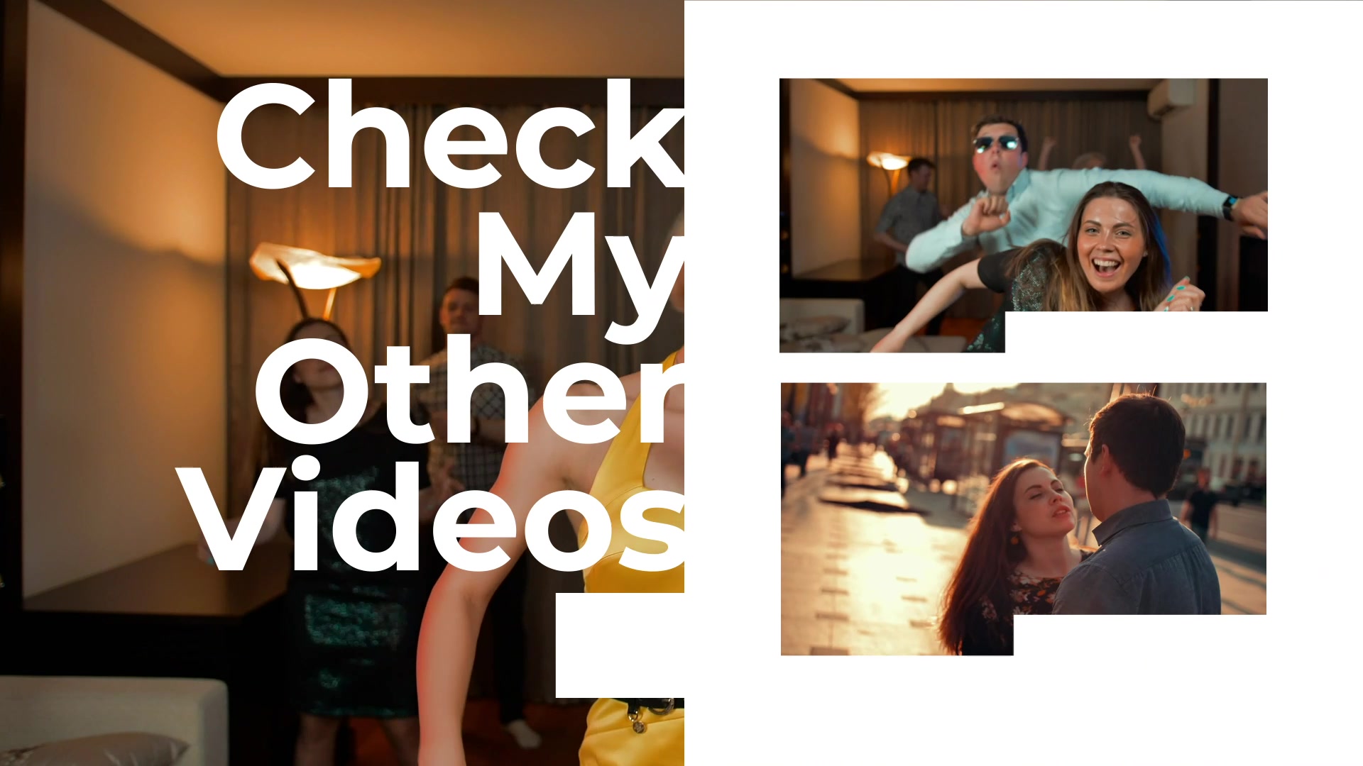 粗体标题和滑入效果,包含两个视频占位符和一个订阅按钮。关键字: YouTube 粗体按钮 结束屏幕订阅
