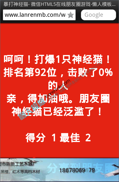 模板简介:该模板名称为【微信朋友圈【暴打神经猫】html5小游戏源码】,大小是,文档格式为.,推荐使用打开,作品中的图片,文字等数据均可修改,图片请在作品中选中图片替换即可,文字修改直接点击文字修改即可,您也可以新增或修改作品中的内容,该模板来自用户分享,如有侵权行为请联系网站客服处理。欢迎来懒人模板【微测试】栏目查找您需要的精美模板。