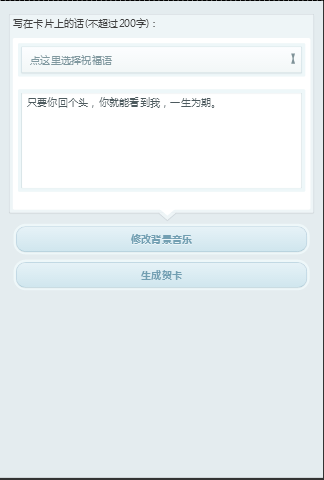 模板简介:该模板名称为【微信htlm5最美情话电子贺卡怎么制作免费模板源码下载】,大小是,文档格式为.,推荐使用打开,作品中的图片,文字等数据均可修改,图片请在作品中选中图片替换即可,文字修改直接点击文字修改即可,您也可以新增或修改作品中的内容,该模板来自用户分享,如有侵权行为请联系网站客服处理。欢迎来懒人模板【微官网】栏目查找您需要的精美模板。