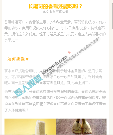模板简介:该模板名称为【微信公众平台编辑器生活百科知识正文文章图文模板素材库】,大小是,文档格式为.,推荐使用打开,作品中的图片,文字等数据均可修改,图片请在作品中选中图片替换即可,文字修改直接点击文字修改即可,您也可以新增或修改作品中的内容,该模板来自用户分享,如有侵权行为请联系网站客服处理。欢迎来懒人模板【微信素材】栏目查找您需要的精美模板。