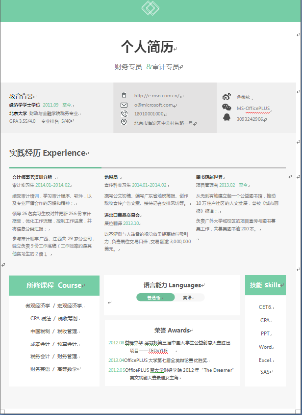 模板简介:该模板名称为【绿色时尚模块中文财务类个人简历模板免费下载】,大小是,文档格式为.,推荐使用打开,作品中的图片,文字等数据均可修改,图片请在作品中选中图片替换即可,文字修改直接点击文字修改即可,您也可以新增或修改作品中的内容,该模板来自用户分享,如有侵权行为请联系网站客服处理。欢迎来懒人模板【财务会计出纳】栏目查找您需要的精美模板。