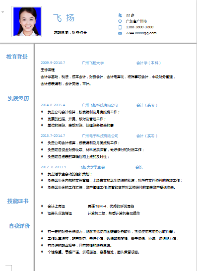 模板简介:该模板名称为【单页纯白色背景财务会计类个人简历模板免费下载】,大小是,文档格式为.,推荐使用打开,作品中的图片,文字等数据均可修改,图片请在作品中选中图片替换即可,文字修改直接点击文字修改即可,您也可以新增或修改作品中的内容,该模板来自用户分享,如有侵权行为请联系网站客服处理。欢迎来懒人模板【财务会计出纳】栏目查找您需要的精美模板。