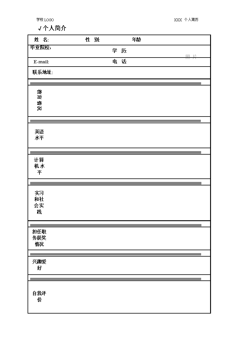 模板简介:该模板名称为【黑白简洁封面单页式表格式通用空白简历模板免费下载】,大小是,文档格式为.,推荐使用打开,作品中的图片,文字等数据均可修改,图片请在作品中选中图片替换即可,文字修改直接点击文字修改即可,您也可以新增或修改作品中的内容,该模板来自用户分享,如有侵权行为请联系网站客服处理。欢迎来懒人模板【通用】栏目查找您需要的精美模板。