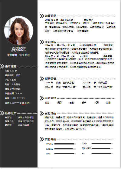 模板简介:该模板名称为【单页时尚带符号黑色市场营销个人简历模板免费下载】,大小是,文档格式为.,推荐使用打开,作品中的图片,文字等数据均可修改,图片请在作品中选中图片替换即可,文字修改直接点击文字修改即可,您也可以新增或修改作品中的内容,该模板来自用户分享,如有侵权行为请联系网站客服处理。欢迎来懒人模板【销售】栏目查找您需要的精美模板。
