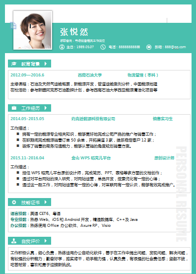 模板简介:该模板名称为【单页绿色多线形市场销售类个人简历模板免费下载】,大小是,文档格式为.,推荐使用打开,作品中的图片,文字等数据均可修改,图片请在作品中选中图片替换即可,文字修改直接点击文字修改即可,您也可以新增或修改作品中的内容,该模板来自用户分享,如有侵权行为请联系网站客服处理。欢迎来懒人模板【销售】栏目查找您需要的精美模板。