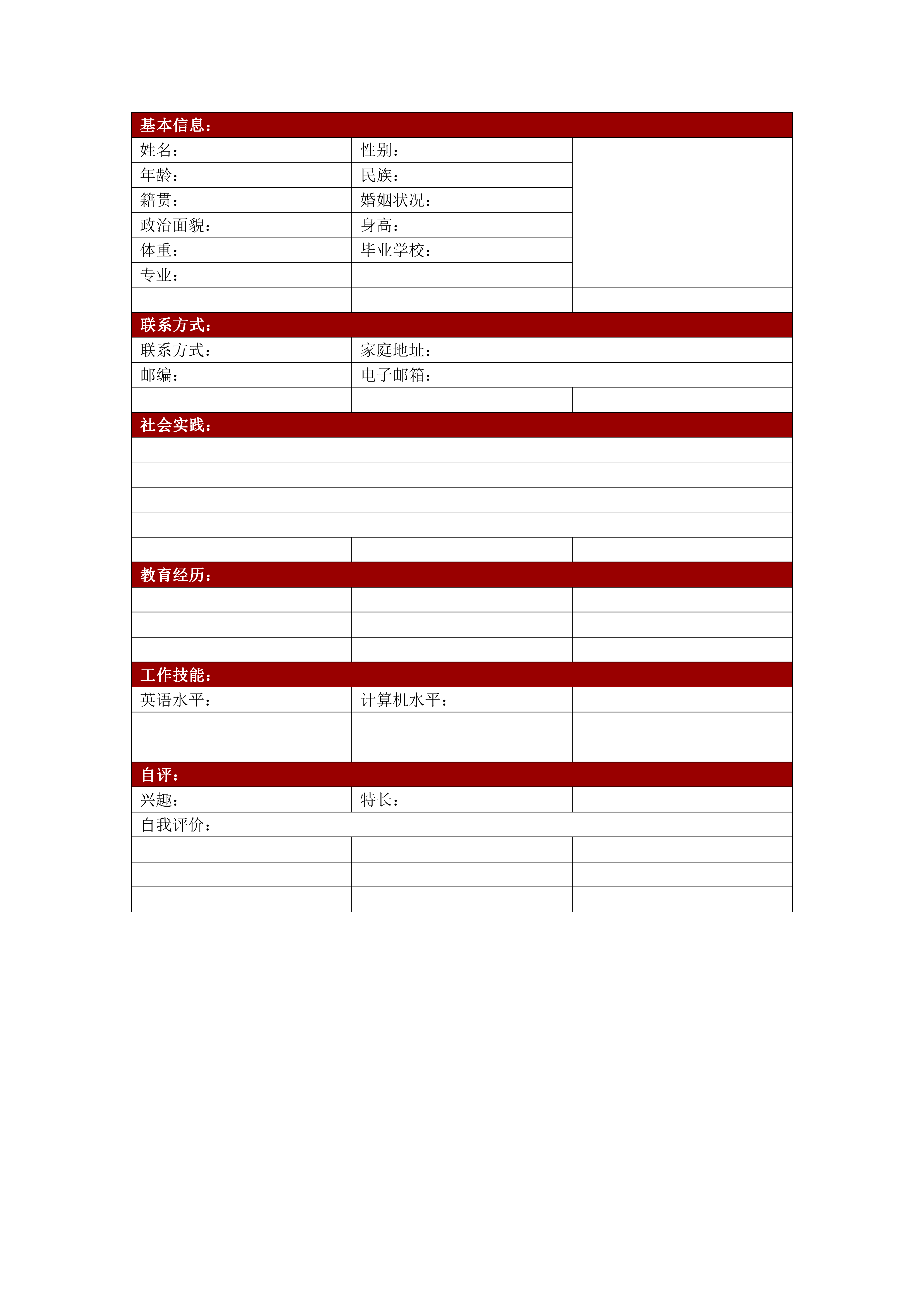 模板简介:该模板名称为【怀旧红花表格式应届生1页式无内容有封面简历模板免费下载】,大小是,文档格式为.,推荐使用打开,作品中的图片,文字等数据均可修改,图片请在作品中选中图片替换即可,文字修改直接点击文字修改即可,您也可以新增或修改作品中的内容,该模板来自用户分享,如有侵权行为请联系网站客服处理。欢迎来懒人模板【应届生毕业生】栏目查找您需要的精美模板。