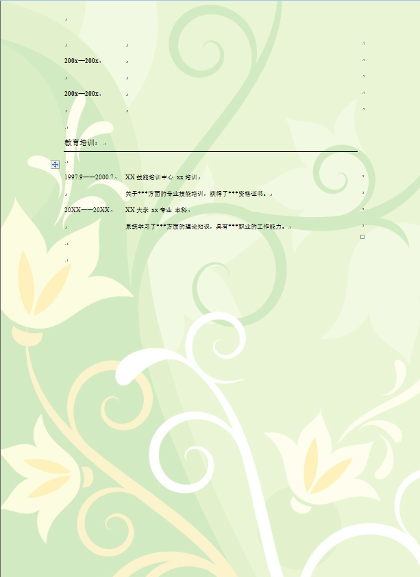 模板简介:该模板名称为【鹅黄花朵表格式应届生通用个人简历模板免费下载】,大小是,文档格式为.,推荐使用打开,作品中的图片,文字等数据均可修改,图片请在作品中选中图片替换即可,文字修改直接点击文字修改即可,您也可以新增或修改作品中的内容,该模板来自用户分享,如有侵权行为请联系网站客服处理。欢迎来懒人模板【应届生毕业生】栏目查找您需要的精美模板。