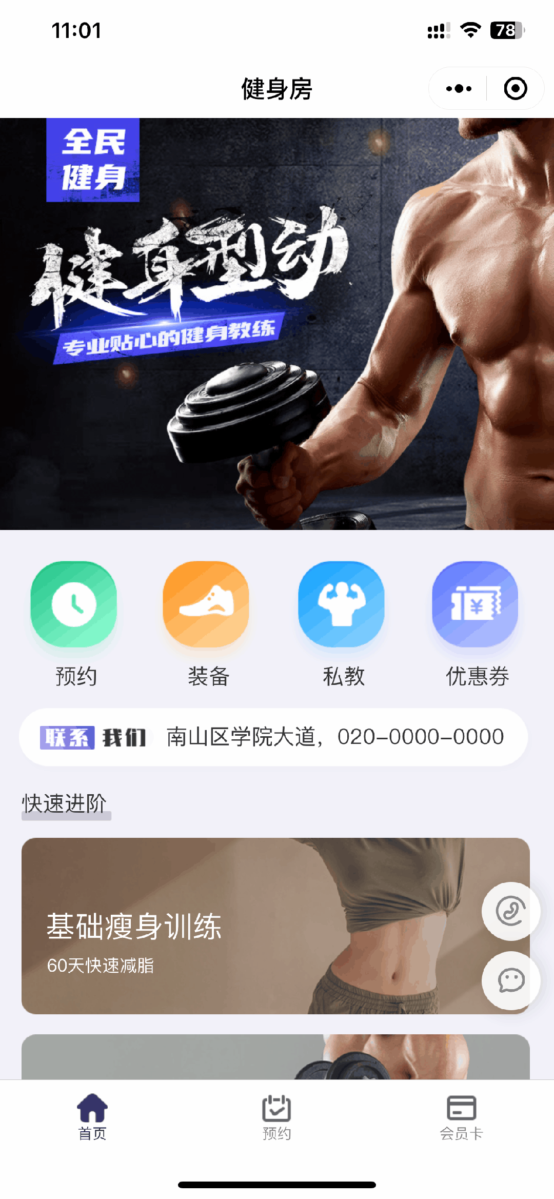 其次,同城健身房小程序还可以提供在线预约服务。用户可以通过小程序来预约健身课程或者健身器材,避免因为客流量大导致无法参与所想要的活动的困扰。小程序还可以提供定制化的健身计划,根据用户的身体情况和健身目标,为用户量身打造适合自己的健身方案。