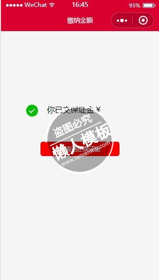 模板简介:该模板名称为【微信小程序已交保证金提示页面样式设计制作开发教程】,大小是,文档格式为.,推荐使用打开,作品中的图片,文字等数据均可修改,图片请在作品中选中图片替换即可,文字修改直接点击文字修改即可,您也可以新增或修改作品中的内容,该模板来自用户分享,如有侵权行为请联系网站客服处理。欢迎来懒人模板【小程序教程】栏目查找您需要的精美模板。