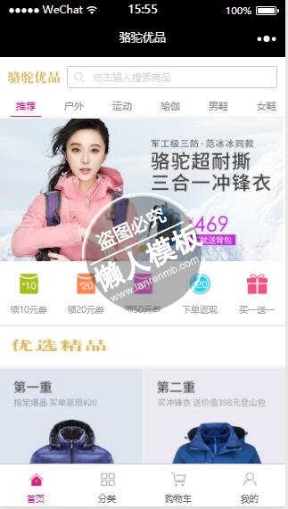 本文给大家带来的是微信小程序骆驼优品手机商城首页样式设计制作开发教程,制作好以后效果图如下: