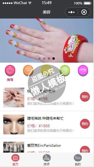 模板简介:该模板名称为【微信小程序美容美甲商城首页设计制作开发教程】,大小是,文档格式为.,推荐使用打开,作品中的图片,文字等数据均可修改,图片请在作品中选中图片替换即可,文字修改直接点击文字修改即可,您也可以新增或修改作品中的内容,该模板来自用户分享,如有侵权行为请联系网站客服处理。欢迎来懒人模板【小程序教程】栏目查找您需要的精美模板。