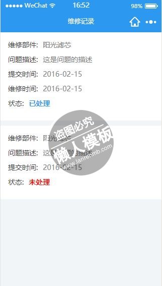 本文给大家带来的是微信小程序滤水维修记录列表页设计制作开发教程,制作好以后效果图如下: