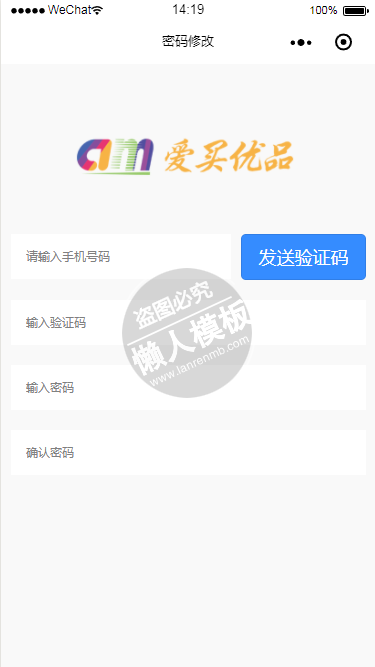 模板简介:该模板名称为【微信小程序爱买优品密码修改页面设计制作开发教程】,大小是,文档格式为.,推荐使用打开,作品中的图片,文字等数据均可修改,图片请在作品中选中图片替换即可,文字修改直接点击文字修改即可,您也可以新增或修改作品中的内容,该模板来自用户分享,如有侵权行为请联系网站客服处理。欢迎来懒人模板【小程序教程】栏目查找您需要的精美模板。