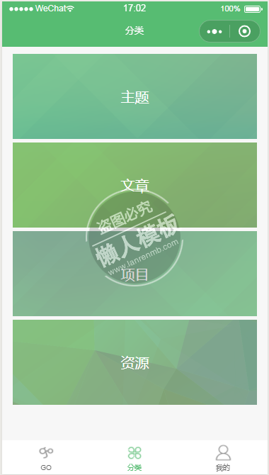 模板简介:该模板名称为【微信小程序GO社区分类页面设计制作开发教程】,大小是,文档格式为.,推荐使用打开,作品中的图片,文字等数据均可修改,图片请在作品中选中图片替换即可,文字修改直接点击文字修改即可,您也可以新增或修改作品中的内容,该模板来自用户分享,如有侵权行为请联系网站客服处理。欢迎来懒人模板【小程序教程】栏目查找您需要的精美模板。