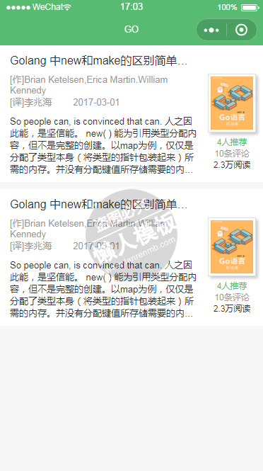 模板简介:该模板名称为【微信小程序GO社区书本介绍页面设计制作开发教程】,大小是,文档格式为.,推荐使用打开,作品中的图片,文字等数据均可修改,图片请在作品中选中图片替换即可,文字修改直接点击文字修改即可,您也可以新增或修改作品中的内容,该模板来自用户分享,如有侵权行为请联系网站客服处理。欢迎来懒人模板【小程序教程】栏目查找您需要的精美模板。