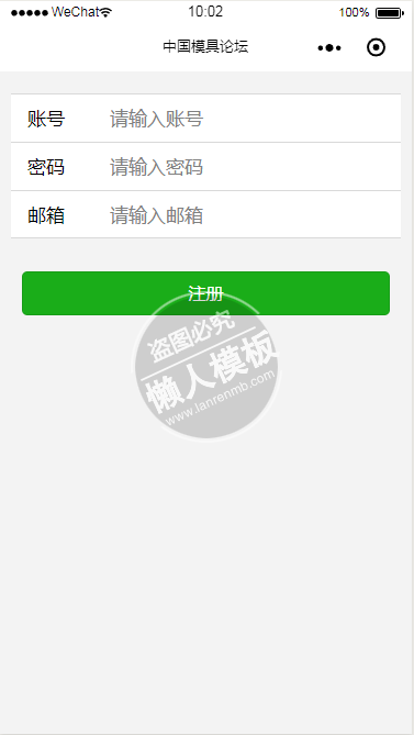 模板简介:该模板名称为【微信小程序中国模具论坛注册页面设计制作开发教程】,大小是,文档格式为.,推荐使用打开,作品中的图片,文字等数据均可修改,图片请在作品中选中图片替换即可,文字修改直接点击文字修改即可,您也可以新增或修改作品中的内容,该模板来自用户分享,如有侵权行为请联系网站客服处理。欢迎来懒人模板【小程序教程】栏目查找您需要的精美模板。