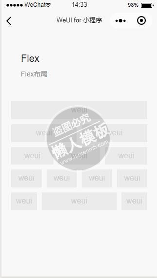 模板简介:该模板名称为【微信小程序Flex布局weui页面设计开发教程下载】,大小是,文档格式为.,推荐使用打开,作品中的图片,文字等数据均可修改,图片请在作品中选中图片替换即可,文字修改直接点击文字修改即可,您也可以新增或修改作品中的内容,该模板来自用户分享,如有侵权行为请联系网站客服处理。欢迎来懒人模板【小程序教程】栏目查找您需要的精美模板。
