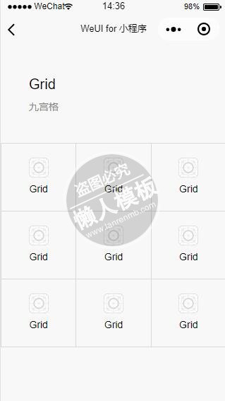 模板简介:该模板名称为【微信小程序grid九宫格界面展示设计开发教程下载】,大小是,文档格式为.,推荐使用打开,作品中的图片,文字等数据均可修改,图片请在作品中选中图片替换即可,文字修改直接点击文字修改即可,您也可以新增或修改作品中的内容,该模板来自用户分享,如有侵权行为请联系网站客服处理。欢迎来懒人模板【小程序教程】栏目查找您需要的精美模板。