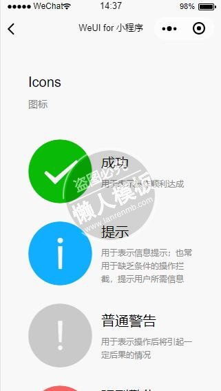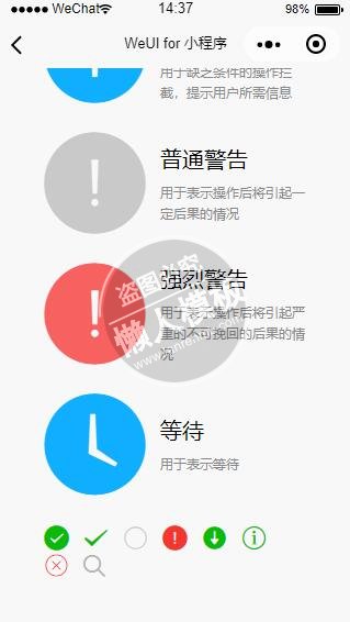 模板简介:该模板名称为【微信小程序各类型ui提示语彩色图标设计开发教程下载】,大小是,文档格式为.,推荐使用打开,作品中的图片,文字等数据均可修改,图片请在作品中选中图片替换即可,文字修改直接点击文字修改即可,您也可以新增或修改作品中的内容,该模板来自用户分享,如有侵权行为请联系网站客服处理。欢迎来懒人模板【小程序教程】栏目查找您需要的精美模板。