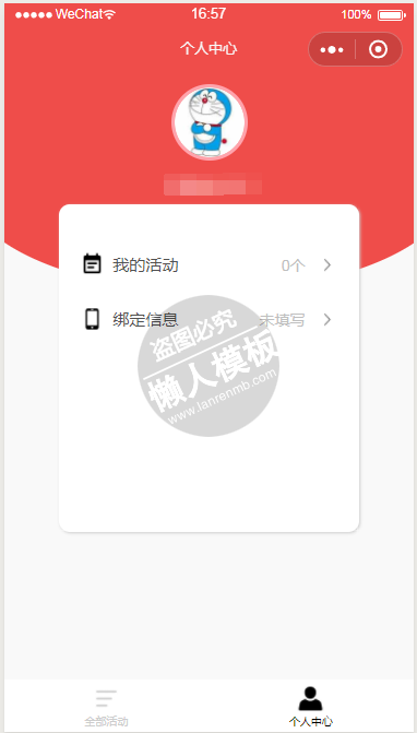 模板简介:该模板名称为【微信小程序研究活动个人中心页面设计制作开发教程】,大小是,文档格式为.,推荐使用打开,作品中的图片,文字等数据均可修改,图片请在作品中选中图片替换即可,文字修改直接点击文字修改即可,您也可以新增或修改作品中的内容,该模板来自用户分享,如有侵权行为请联系网站客服处理。欢迎来懒人模板【小程序教程】栏目查找您需要的精美模板。