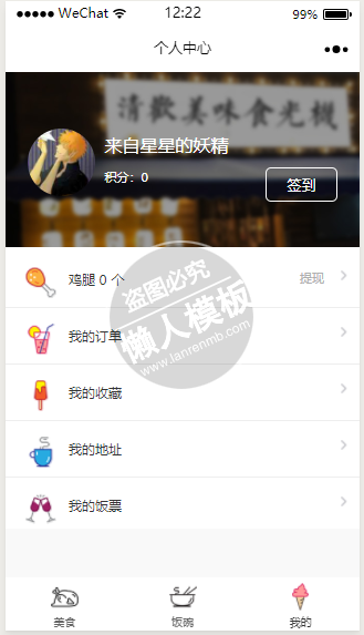模板简介:该模板名称为【微信小程序发现美食个人订单页面设计制作开发教程】,大小是,文档格式为.,推荐使用打开,作品中的图片,文字等数据均可修改,图片请在作品中选中图片替换即可,文字修改直接点击文字修改即可,您也可以新增或修改作品中的内容,该模板来自用户分享,如有侵权行为请联系网站客服处理。欢迎来懒人模板【小程序教程】栏目查找您需要的精美模板。