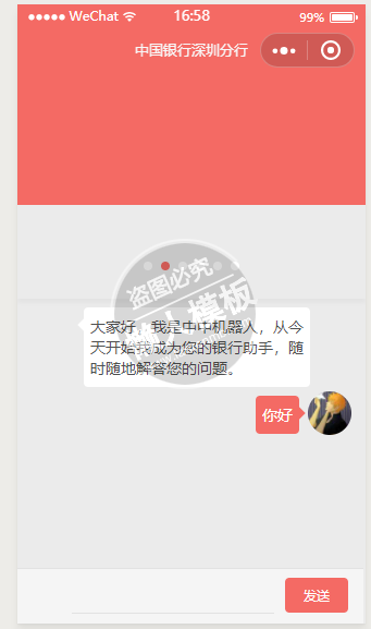 模板简介:该模板名称为【微信小程序银行机器人客服页面设计制作开发教程】,大小是,文档格式为.,推荐使用打开,作品中的图片,文字等数据均可修改,图片请在作品中选中图片替换即可,文字修改直接点击文字修改即可,您也可以新增或修改作品中的内容,该模板来自用户分享,如有侵权行为请联系网站客服处理。欢迎来懒人模板【小程序教程】栏目查找您需要的精美模板。