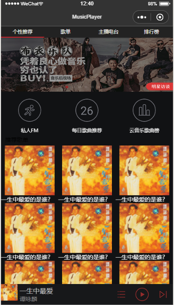 模板简介:该模板名称为【微信小程序音乐播放器首页页面设计制作开发教程】,大小是,文档格式为.,推荐使用打开,作品中的图片,文字等数据均可修改,图片请在作品中选中图片替换即可,文字修改直接点击文字修改即可,您也可以新增或修改作品中的内容,该模板来自用户分享,如有侵权行为请联系网站客服处理。欢迎来懒人模板【小程序教程】栏目查找您需要的精美模板。