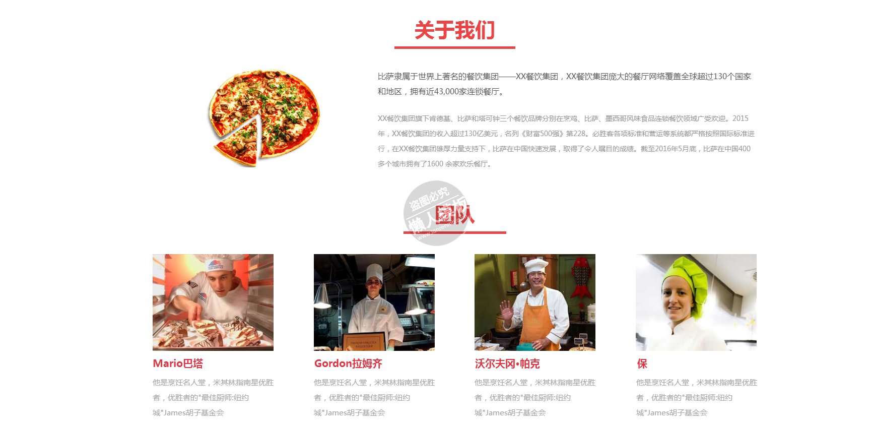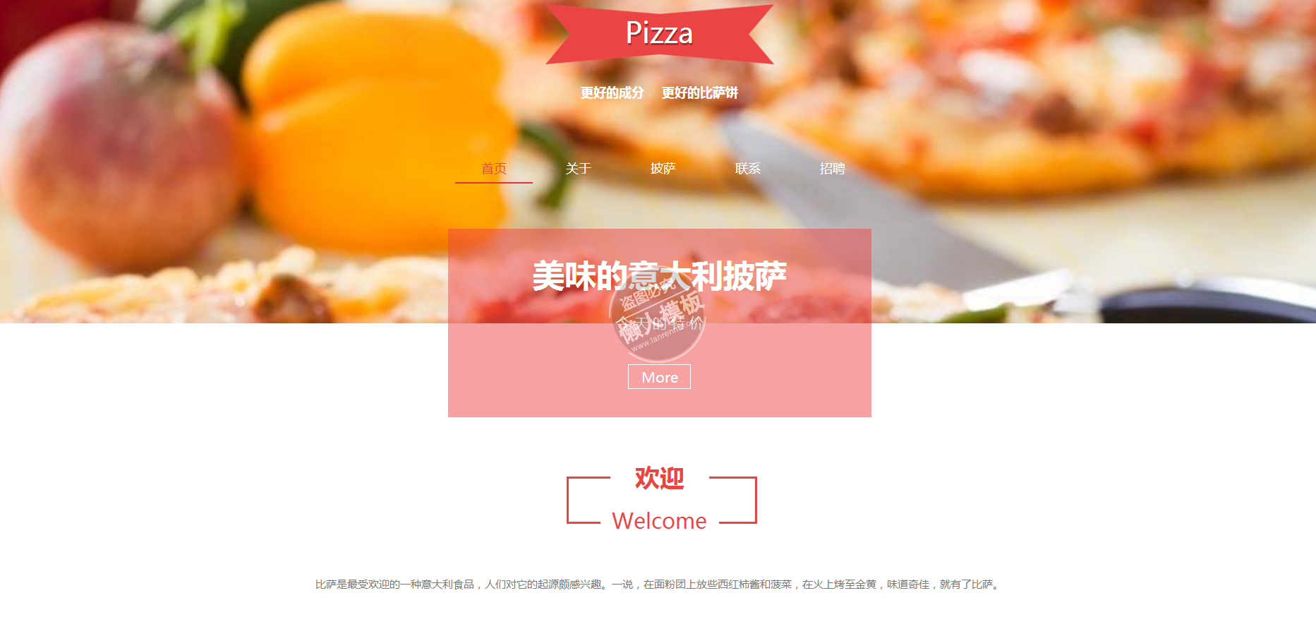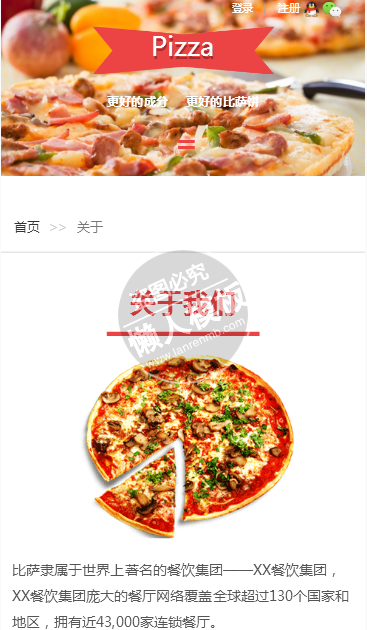 模板简介:该模板名称为【美味披萨手机PC端自适应响应式html5餐饮网站双模板下载】,大小是,文档格式为.,推荐使用打开,作品中的图片,文字等数据均可修改,图片请在作品中选中图片替换即可,文字修改直接点击文字修改即可,您也可以新增或修改作品中的内容,该模板来自用户分享,如有侵权行为请联系网站客服处理。欢迎来懒人模板【餐饮】栏目查找您需要的精美模板。