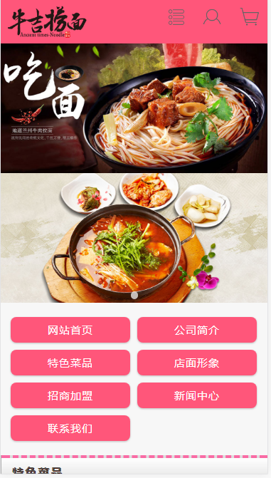 模板简介:该模板名称为【牛吉捞面自适应响应式网站模板素材免费下载】,大小是,文档格式为.,推荐使用打开,作品中的图片,文字等数据均可修改,图片请在作品中选中图片替换即可,文字修改直接点击文字修改即可,您也可以新增或修改作品中的内容,该模板来自用户分享,如有侵权行为请联系网站客服处理。欢迎来懒人模板【餐饮】栏目查找您需要的精美模板。