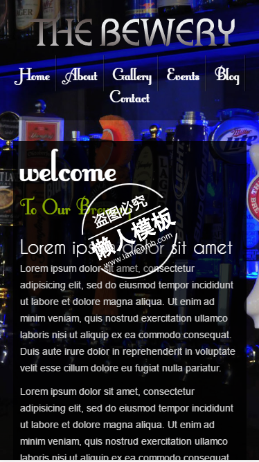 模板简介:该模板名称为【Free The Brewery触屏版html5手机wap餐饮酒店网站模板下载】,大小是,文档格式为.,推荐使用打开,作品中的图片,文字等数据均可修改,图片请在作品中选中图片替换即可,文字修改直接点击文字修改即可,您也可以新增或修改作品中的内容,该模板来自用户分享,如有侵权行为请联系网站客服处理。欢迎来懒人模板【餐饮】栏目查找您需要的精美模板。