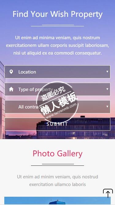 模板简介:该模板名称为【Today Flats城市建设设计触屏版html5手机wap房地产网站模板下载】,大小是,文档格式为.,推荐使用打开,作品中的图片,文字等数据均可修改,图片请在作品中选中图片替换即可,文字修改直接点击文字修改即可,您也可以新增或修改作品中的内容,该模板来自用户分享,如有侵权行为请联系网站客服处理。欢迎来懒人模板【房产】栏目查找您需要的精美模板。