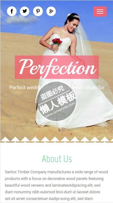模板简介:该模板名称为【Perfection完美的婚礼进行html5婚庆公司手机网站模板免费下载】,大小是,文档格式为.,推荐使用打开,作品中的图片,文字等数据均可修改,图片请在作品中选中图片替换即可,文字修改直接点击文字修改即可,您也可以新增或修改作品中的内容,该模板来自用户分享,如有侵权行为请联系网站客服处理。欢迎来懒人模板【婚庆】栏目查找您需要的精美模板。