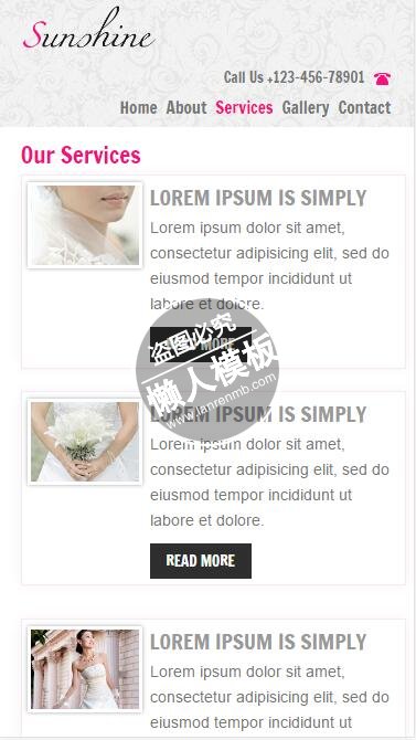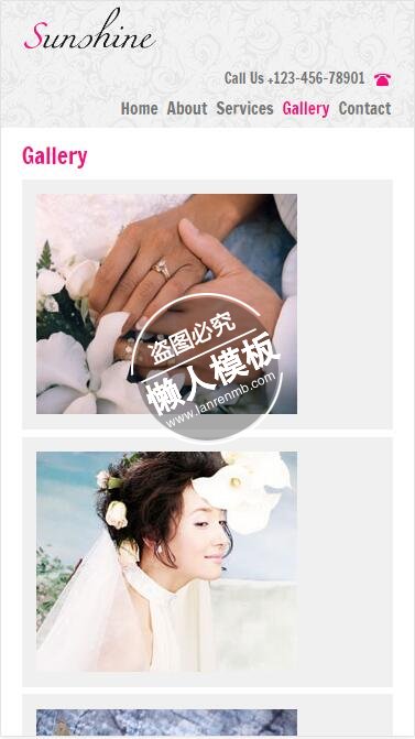 模板简介:该模板名称为【Sunshine粉红色站风格html5婚庆公司手机wap网站模板免费下载】,大小是,文档格式为.,推荐使用打开,作品中的图片,文字等数据均可修改,图片请在作品中选中图片替换即可,文字修改直接点击文字修改即可,您也可以新增或修改作品中的内容,该模板来自用户分享,如有侵权行为请联系网站客服处理。欢迎来懒人模板【婚庆】栏目查找您需要的精美模板。