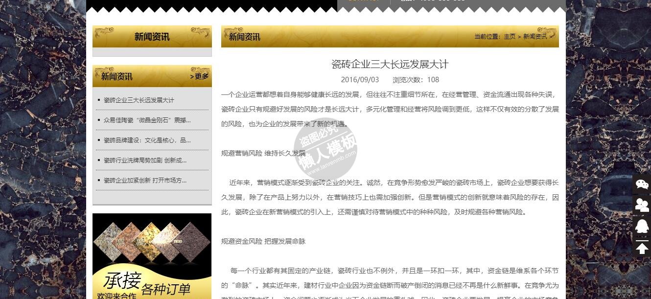 模板简介:该模板名称为【大理石花岗岩材料家居整站带织梦后台pc手机双网站源码下载】,大小是,文档格式为.,推荐使用打开,作品中的图片,文字等数据均可修改,图片请在作品中选中图片替换即可,文字修改直接点击文字修改即可,您也可以新增或修改作品中的内容,该模板来自用户分享,如有侵权行为请联系网站客服处理。欢迎来懒人模板【家居】栏目查找您需要的精美模板。