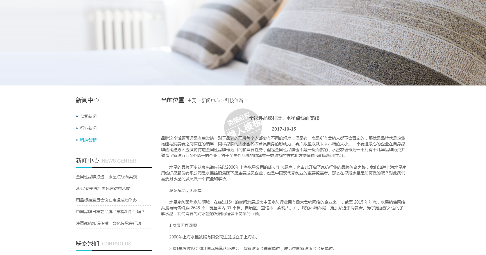 模板简介:该模板名称为【水星家纺家居纺织品类网站整站带织梦后台pc手机双网站源码下载】,大小是,文档格式为.,推荐使用打开,作品中的图片,文字等数据均可修改,图片请在作品中选中图片替换即可,文字修改直接点击文字修改即可,您也可以新增或修改作品中的内容,该模板来自用户分享,如有侵权行为请联系网站客服处理。欢迎来懒人模板【家居】栏目查找您需要的精美模板。