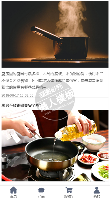 模板简介:该模板名称为【匠心铁锅手机PC端自适应响应式html5厨具网站双模板下载】,大小是,文档格式为.,推荐使用打开,作品中的图片,文字等数据均可修改,图片请在作品中选中图片替换即可,文字修改直接点击文字修改即可,您也可以新增或修改作品中的内容,该模板来自用户分享,如有侵权行为请联系网站客服处理。欢迎来懒人模板【家居】栏目查找您需要的精美模板。
