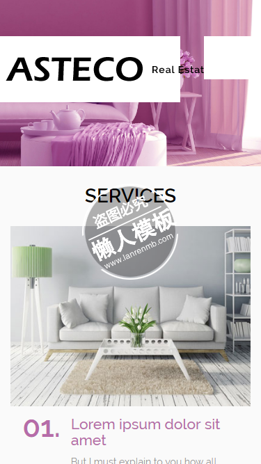 模板简介:该模板名称为【Asteco温馨紫色风格html5手机wap家居设计家具网站模板免费下载】,大小是,文档格式为.,推荐使用打开,作品中的图片,文字等数据均可修改,图片请在作品中选中图片替换即可,文字修改直接点击文字修改即可,您也可以新增或修改作品中的内容,该模板来自用户分享,如有侵权行为请联系网站客服处理。欢迎来懒人模板【家居】栏目查找您需要的精美模板。